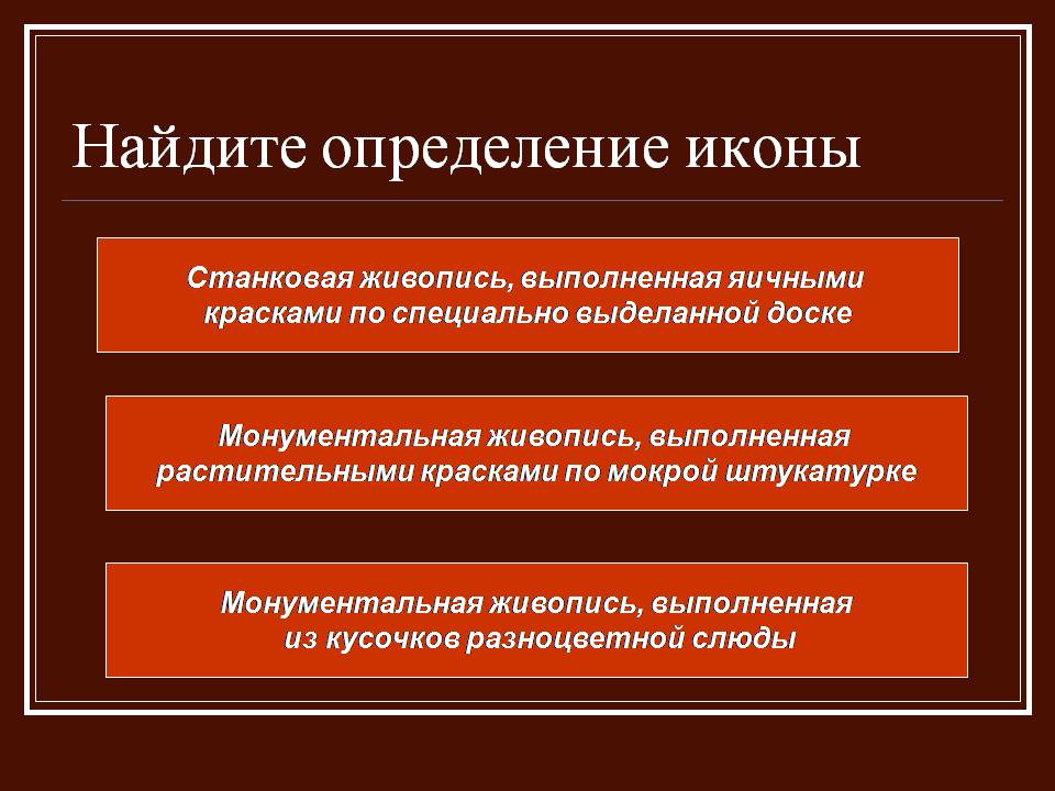 Презентация: Живопись Древней РусиОписание:Презентация на тему «Живопись Древней Руси» выполнена для учащихся девятых классов с целью знакомства с шедеврами древнерусской живописи и зодчества.Школьники узнают имена знаменитых древнерусских иконописцев и жанры искусства. Презентация начинается с таблицы, которая демонстрирует все виды искусства Руси: живопись (мозаика, фрески, иконы), зодчество, литература (житийная, летописи, повести). В работе подробно описаны все виды живописи Древней Руси. Приводится изображения многих икон.